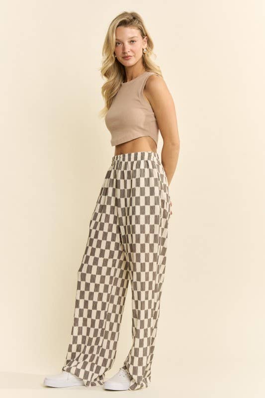 Retro Checkered Wide Leg Pants - Olive + Cream