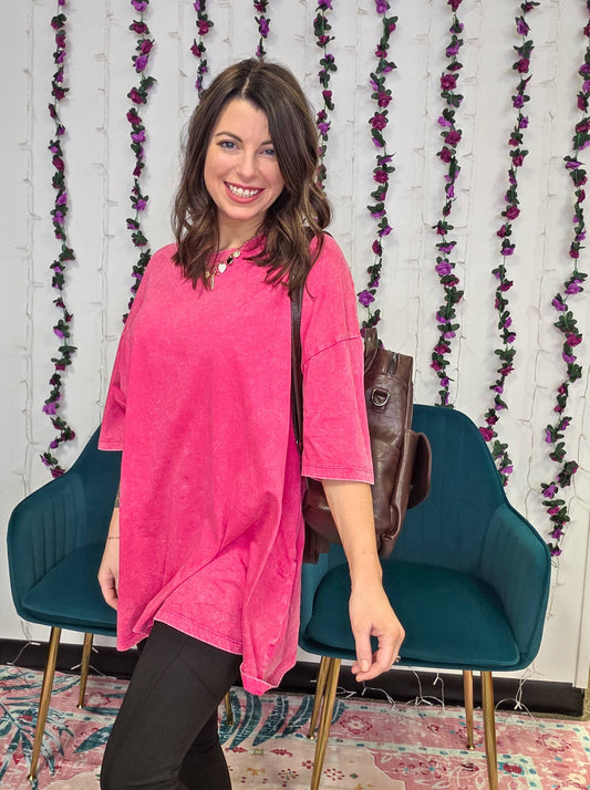 Zenana Black Oversized Ribbed Round Neck Short Sleeve Tee
